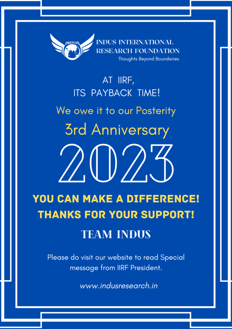 Indus International Research Foundation is a New Delhi based organisation with its overseas centre at USA . It is part of a global network of scholars, professionals and veterans based in India and abroad. The Foundation focuses primarily on international relations, Indian heritage, political economy and security studies. Led by experts with decades of international and domestic policy experience, IIRF India engages with governments, policymakers, academics, students, industries, practitioners, and civil society to provide insightful and fresh analysis of global trends and India’s challenging role as an emerging world leader. Foundation also runs special programs for veterans.
